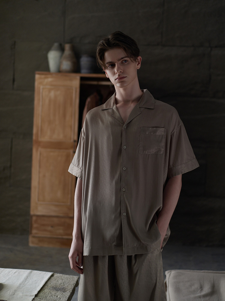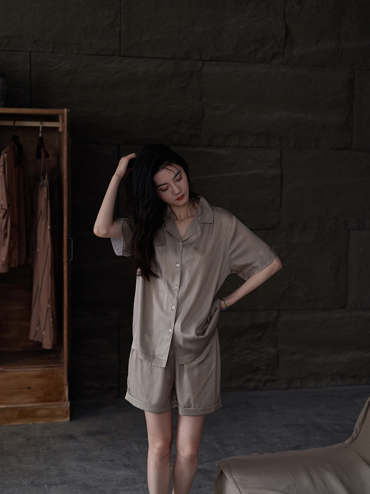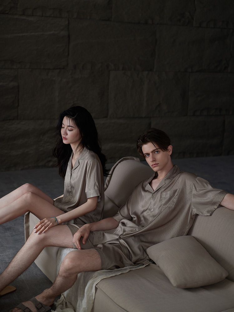 【25春夏新作】 アイスシルクのアイスコットンを採用し、薄くて軽く、通気性があり、水や汗をよく吸収して、涼しく快適な着心地を実現。夏にぴったりの一着です。男女ともにゆったりとしたデザインで、さまざまな体型にフィットし、部屋着としてはもちろん、ちょっとした外出にも活躍します。  |