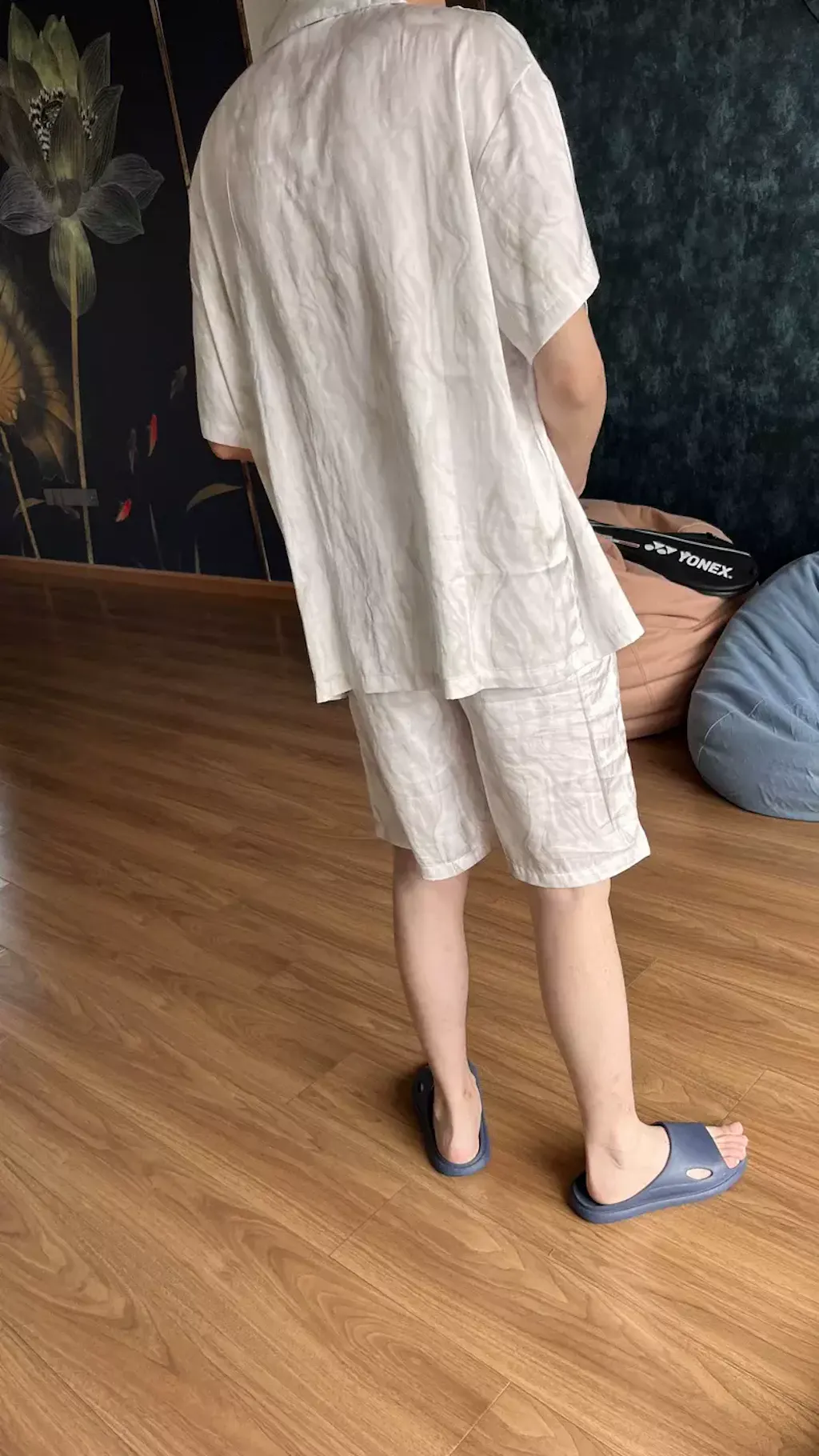 **「当店のパジャマはゆったりとしたデザインで伸縮性もございますので、細かいサイズを気にせず、体重を目安にお選びいただけます。」