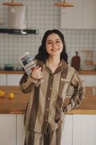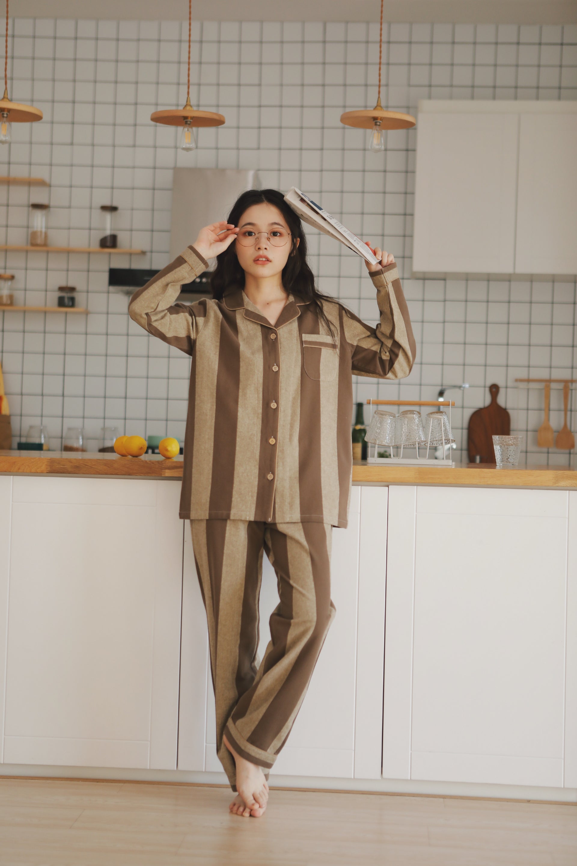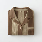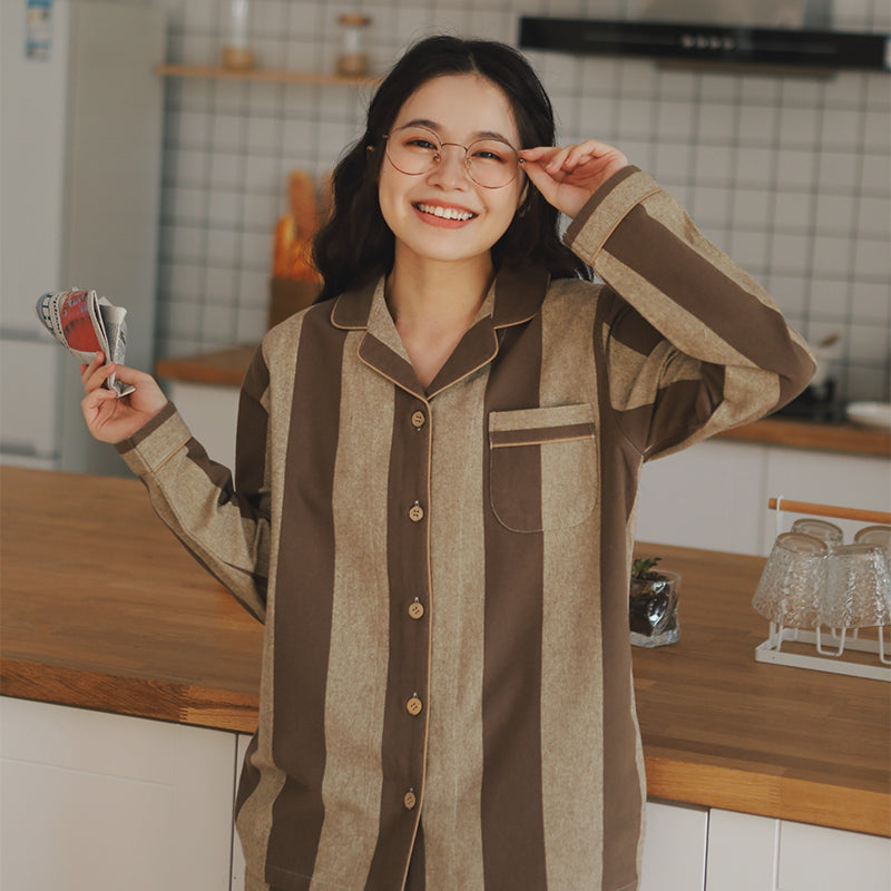 【 26年新作】 肌にやさしい柔らかな純綿起毛素材を使用し、優れた保温性と通気性を兼ね備え、軽やかで快適な着心地を実現しました。 男女同款で、ブルーとブラウンの上品なストライプ柄を展開。 襟付きボタンデザインはシンプルながら精緻で、高級感を演出します。 ゆったりとしたカットは身体に自然にフィットし、居宅での着用はもちろん、ちょっとした外出にも適しています。 カップルで揃えて着ることで、温かさを保ちながらも、控えめで洗練された上質感を日常に添える一着です。 |