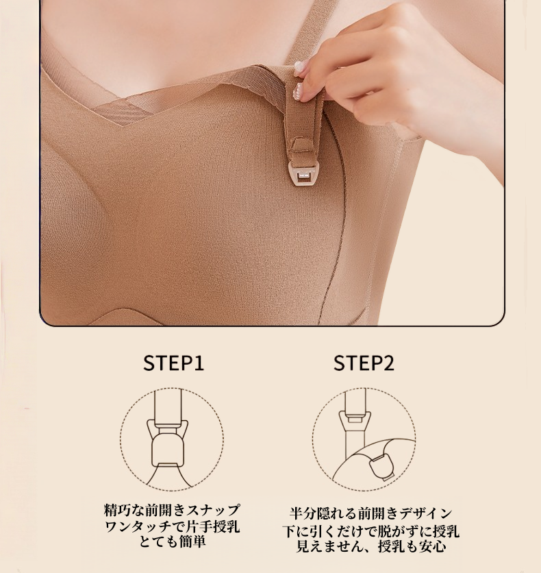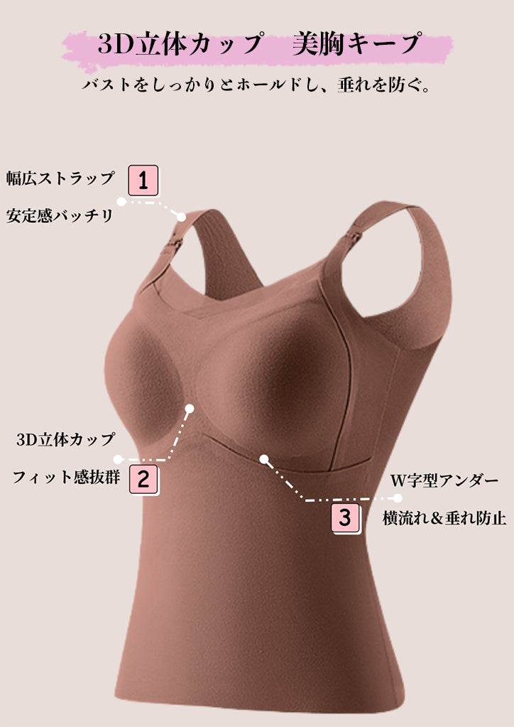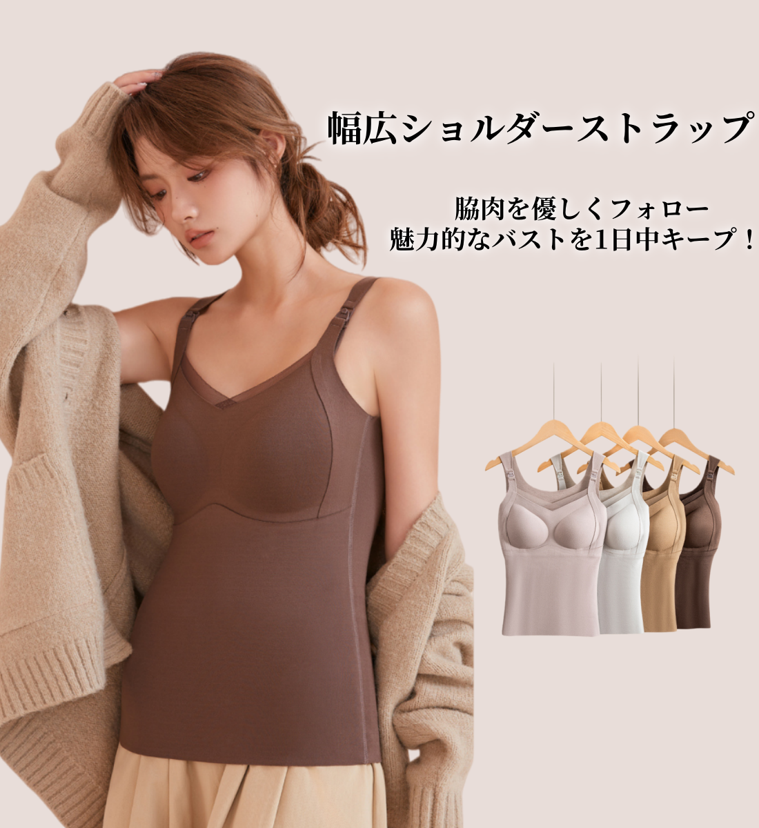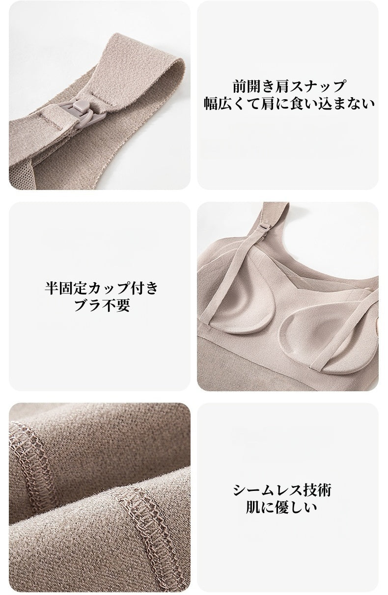 • 自带胸パッド付きで、授乳中も防止透けや横流れ安心