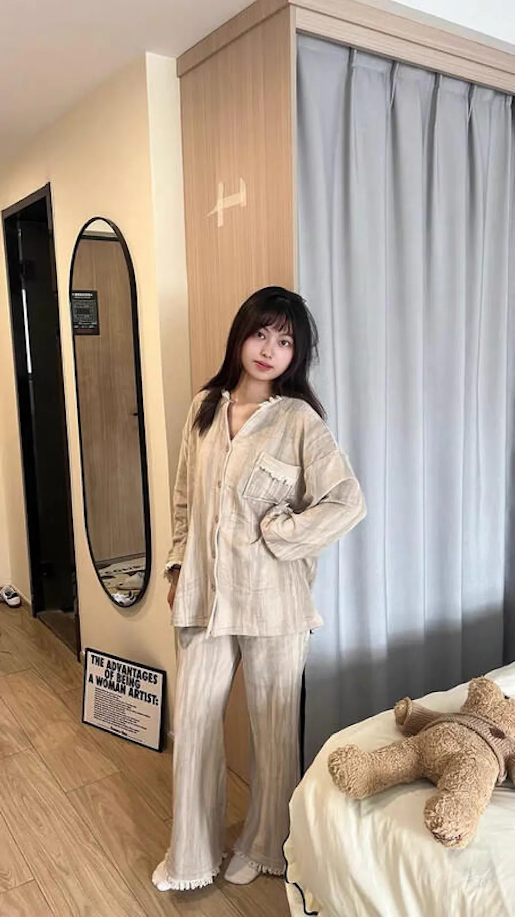 **「当店のパジャマはゆったりとしたデザインで伸縮性もございますので、細かいサイズを気にせず、体重を目安にお選びいただけます。」
