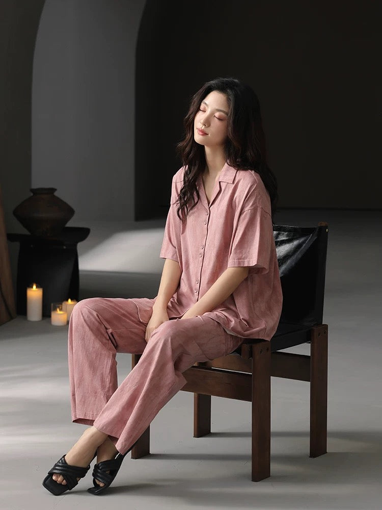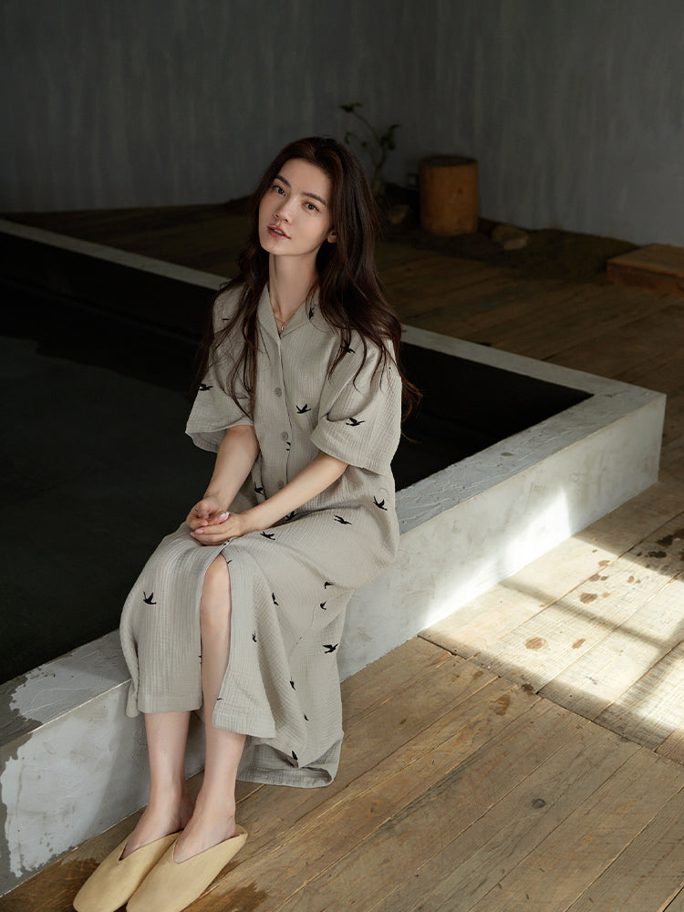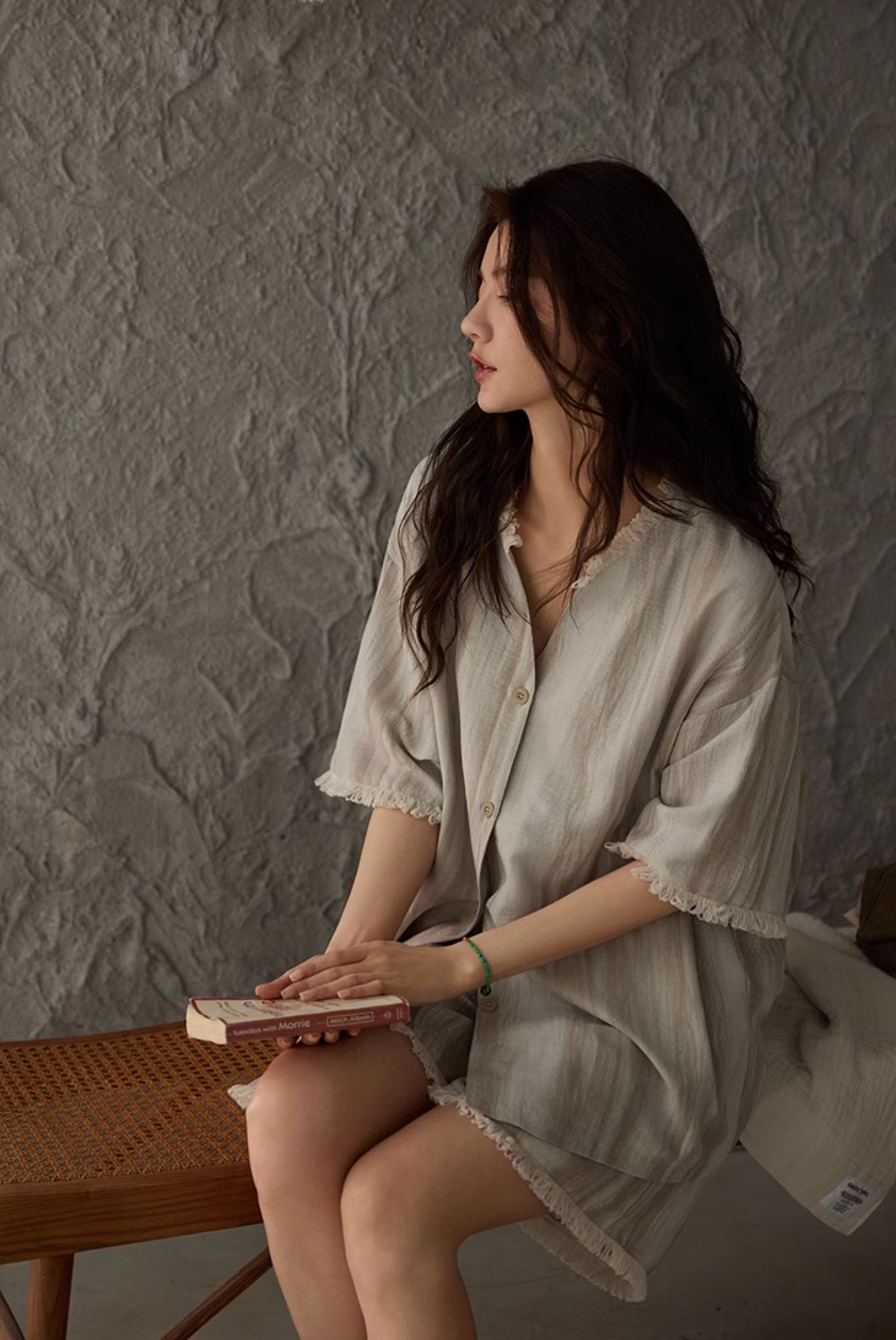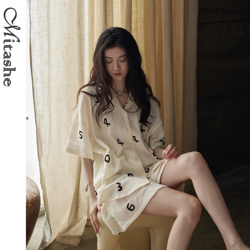綿100%【ガーゼパジャマ レディース】女性彼女 誕生 日 プレゼント かわいいおしゃれ外出 できる 部屋 着 ふわふわ 高級半袖ルームウェア
