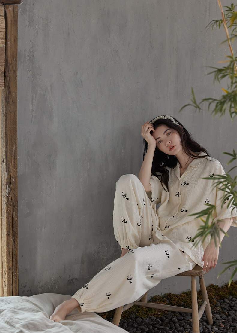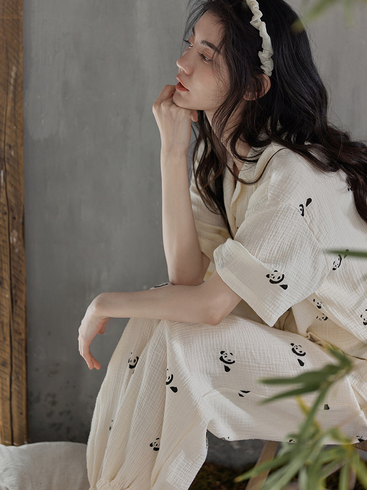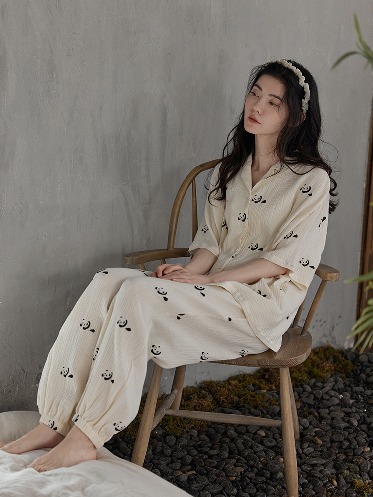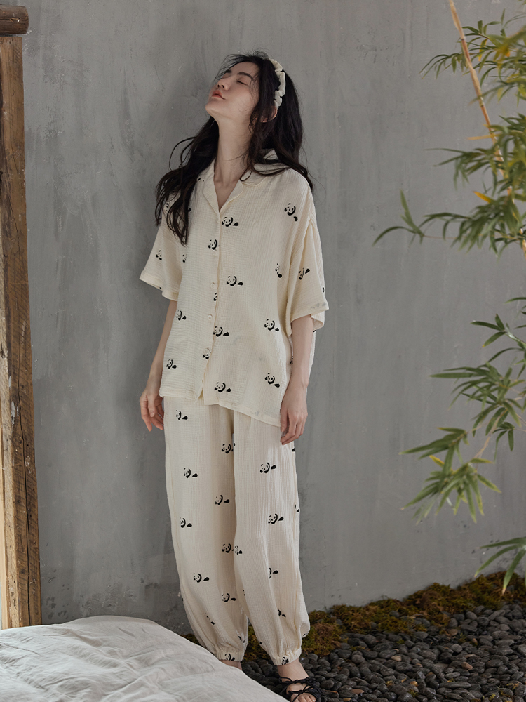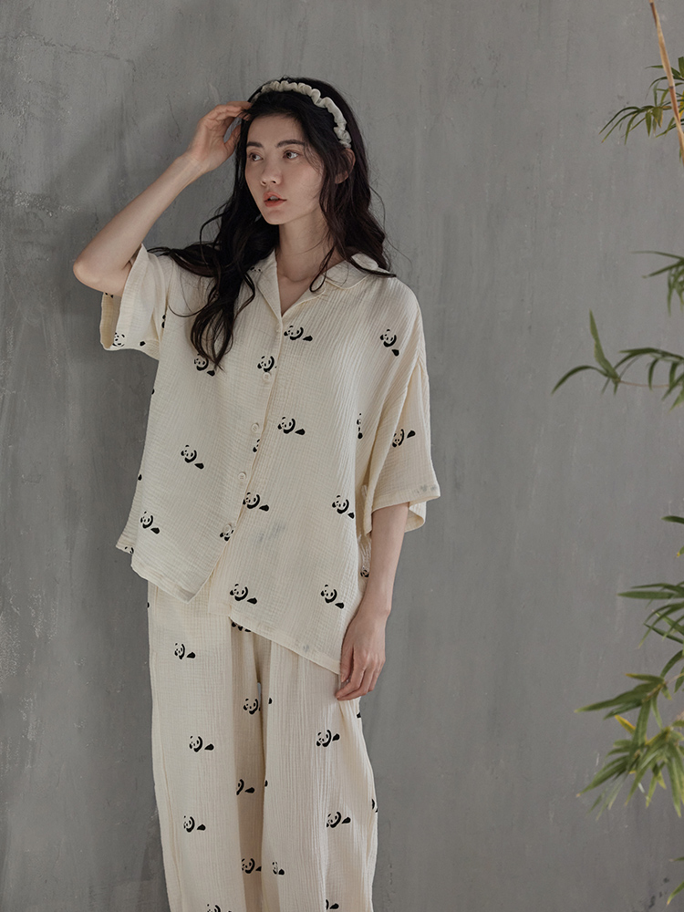 綿100%【かわいい パジャマ レディース】女性彼女 誕生 日 プレゼント かわいい 外出できる部屋着 半袖長ズボンルームウェア パンダ模様
