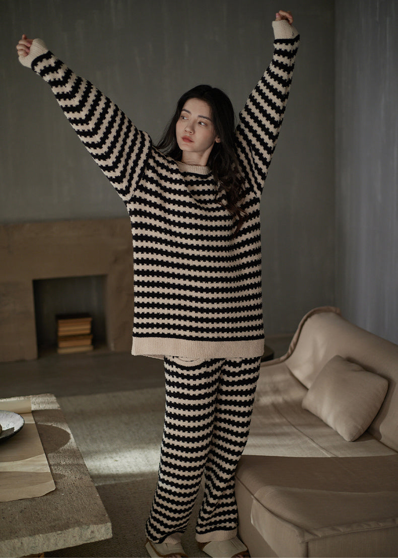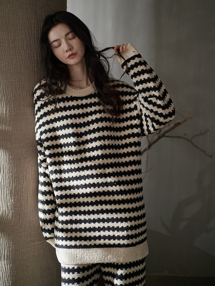 【秋冬人気】 高品質のハーフフリースを使用し、柔らかな肌触りと優れた保温性を実現。静電気防止機能が施されているため、冬の乾燥した季節でも快適に過ごせます。スタイリッシュなストライプ柄が、カジュアルでありながらもおしゃれな印象を与えます。 締め付け感のない長めのリプ腹巻きがすっぽりと包み込み、お腹の冷えを防ぐのに最適です。これ一着で、温かさとスタイルを両立した快適な冬のリラックスタイムをお楽しみください。 |