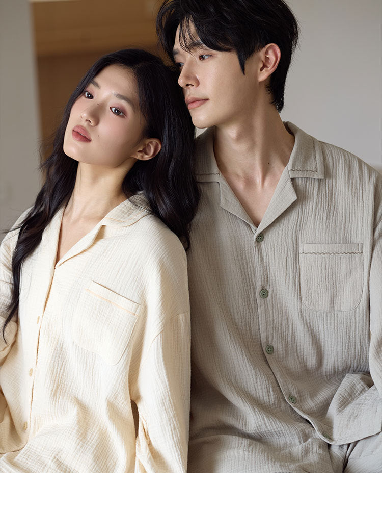 【25秋冬新作】 やわらかな綿のぬくもりに包まれ、心地よいリラックスタイムを演出。綿100%素材で、秋冬の日常に安心感とやさしい着心地を届けます。 ゆったりとしたシルエットとV字開襟デザインで、動きやすく快適。長袖・長ズボンの上下セットは、家でのんびり過ごす時間はもちろん、ちょっとした外出にもぴったりです。 落ち着いたカラーリングで、女性は杏色・淡紫色、男性は浅灰・深灰の上品な色合い。シンプルで洗練されたデザインは、ふたりでお揃いにしても自然におしゃれに楽しめます。 |
