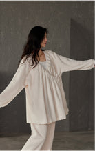 【25秋冬新作】 やわらかなアイボリーカラーが、上品で優しい印象に。 肌に心地よく、敏感な肌にもやさしく寄り添う、ふんわりとした素材感。 ウエストは調節可能で、リボンでフィット感も自在。 片手で開け閉めできる授乳口付きで、赤ちゃんとの時間もスムーズに。 柔らかく温かい着心地で、快適さと美しさを兼ね備えた、秋冬にぴったりのマタニティパジャマです。 |