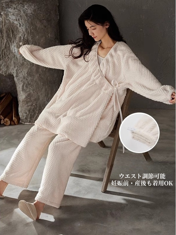 プレミアム厚地【冬用マタニティ授乳パジャマ】妊婦 さんプレゼントもこもこの前 開き 疲労 回復の パジャマモコモコ ウエスト調節可能 保温裏起毛 長袖ルームウェア【25秋冬新作】