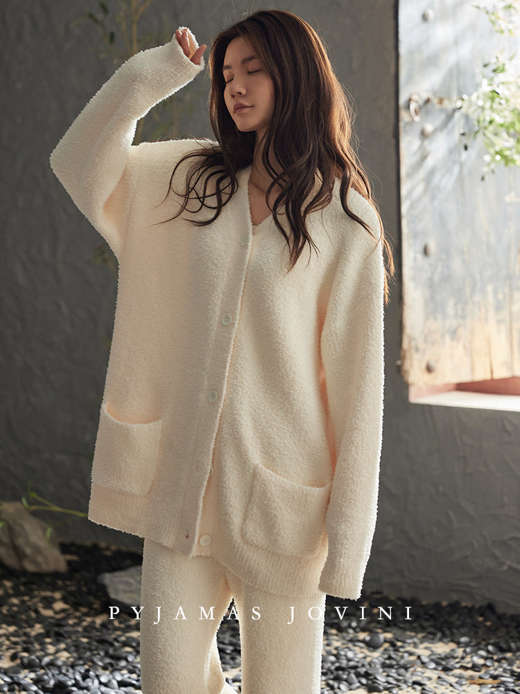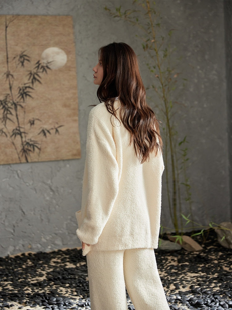 プレミアム厚地【冬用レディースパジャマ】女性彼女誕生 日プレゼント 可愛いもこもこの前 開き外出できる部屋着 モコモコ疲労回復 超~暖かい保温 長袖 ルームウェア 【25秋冬新作】