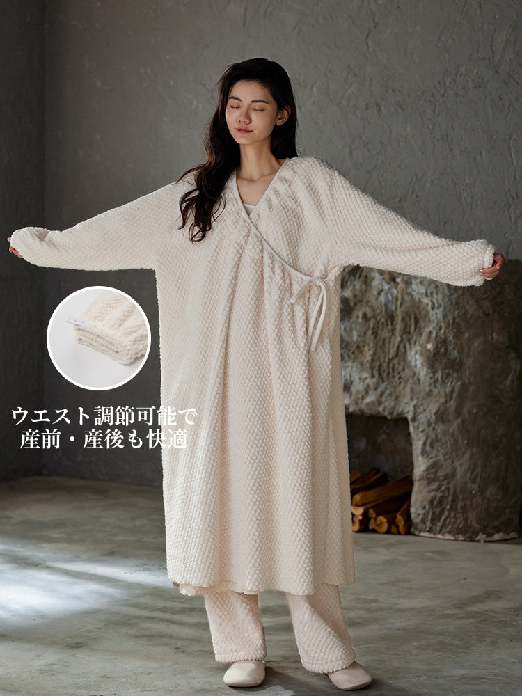 モコモコ【パジャママタニティ】妊婦 さんプレゼント ロング丈 もこもこの前 開き 授乳 疲労 回復の 産後入院パジャマ ウエスト調節可能 保温 冬 ルームウェア【25秋冬新作No.1】