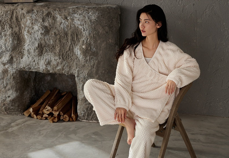 レディースコーラルフリースパジャマ 秋冬用 厚手フランネルルームウェアセット