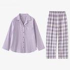 綿 100%【上質ガーゼペアパジャマ】 ユニセックスカラートップス × チェックパンツ オープンカラー 長袖 ルームウェア 通気性 肌触り 外出可能 誕生日 結婚祝い プレゼント 【26 年新作】