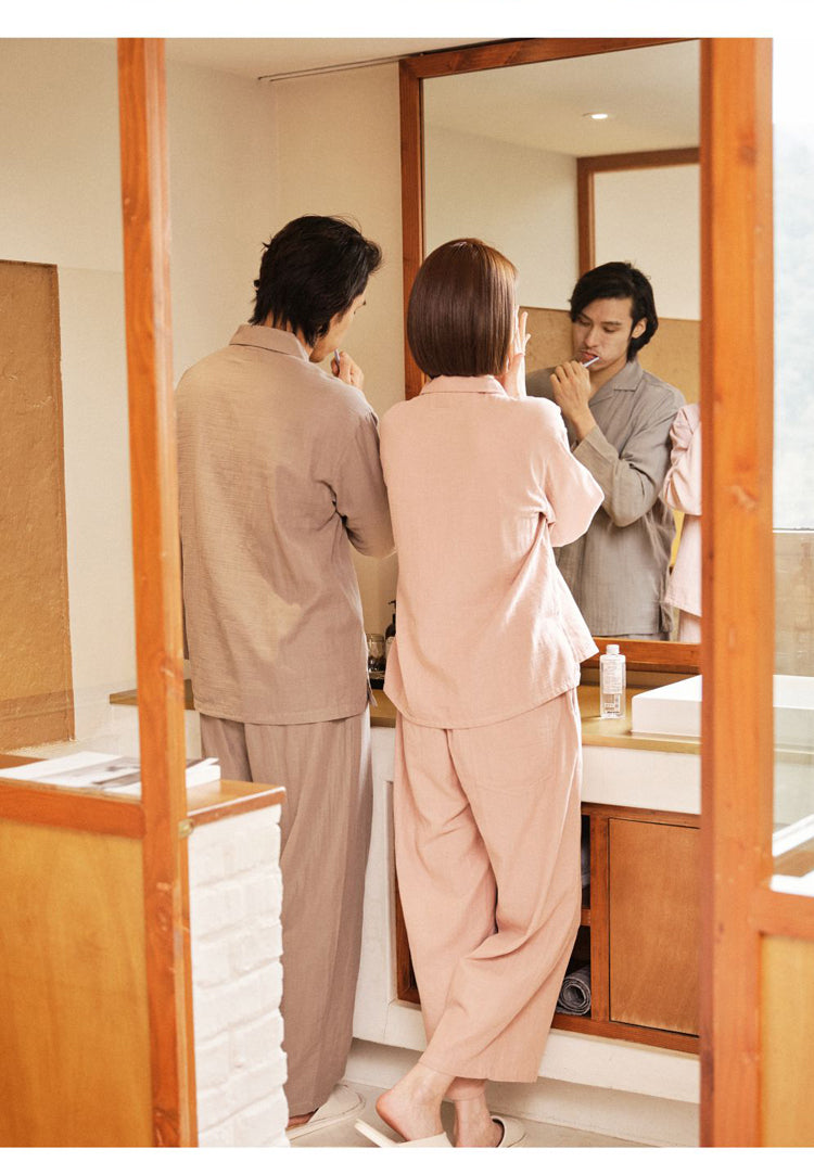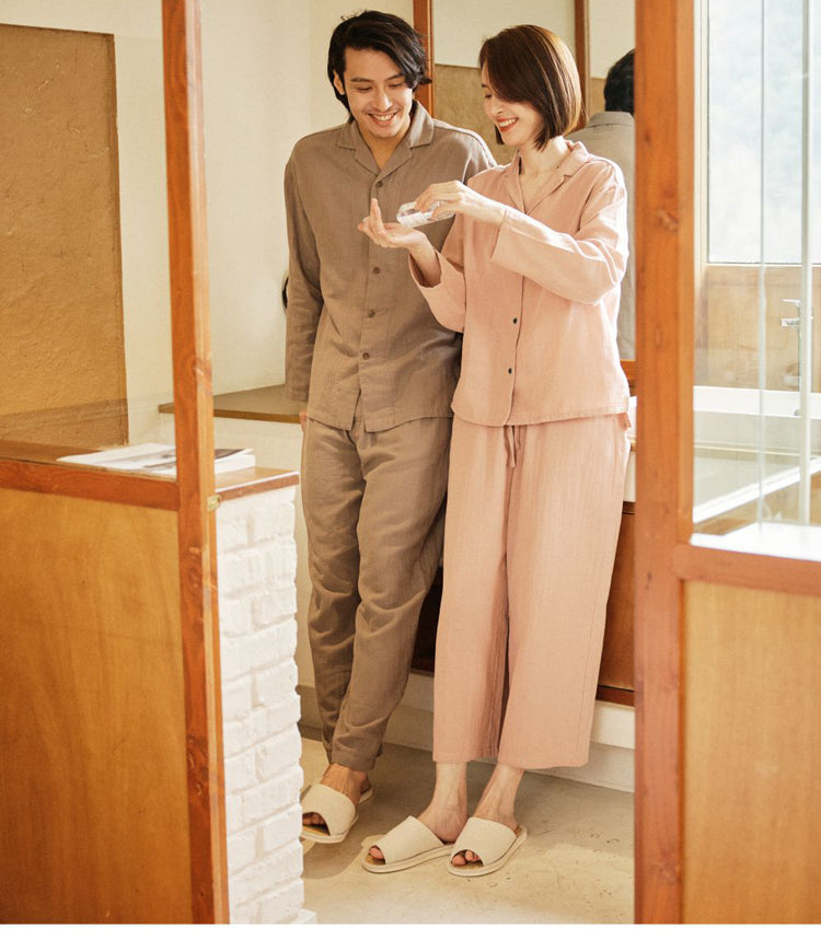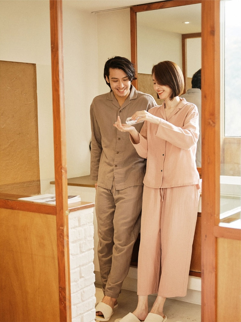 ゆったりとしたシルエットで動きを妨げず、部屋でのリラックスタイムはもちろん、パートナーとお揃いで過ごす特別な時間にもぴったりです。