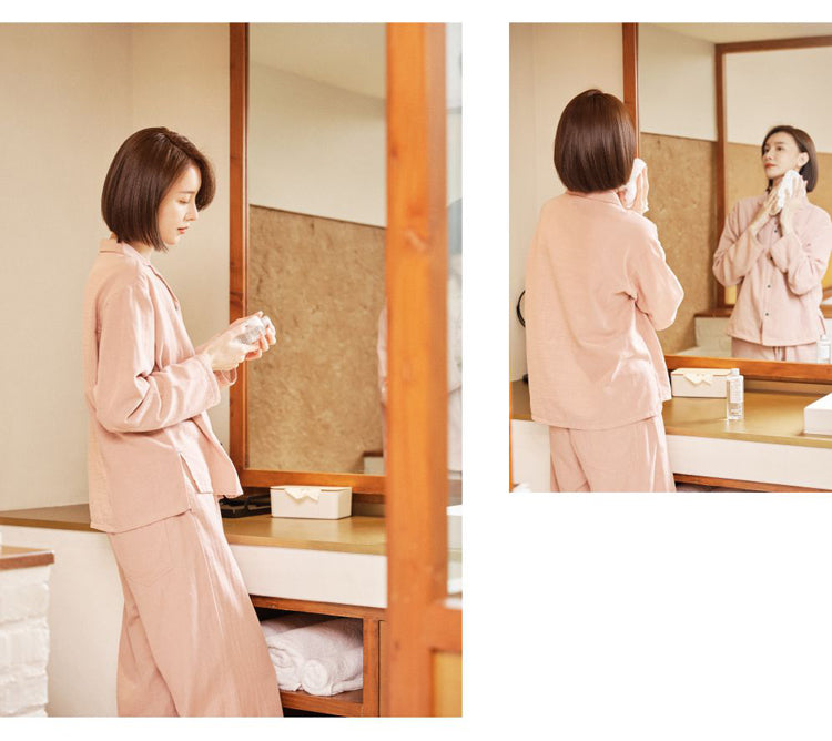 綿100% 【上品な ペアパジャマ】誕生 日 結婚 祝い 敬老 の 日 プレゼント 二重ガーゼ 外出できる部屋着 通気性 モコモコ疲労回復 かわいい 長袖 ルームウェア 【25秋冬新作】