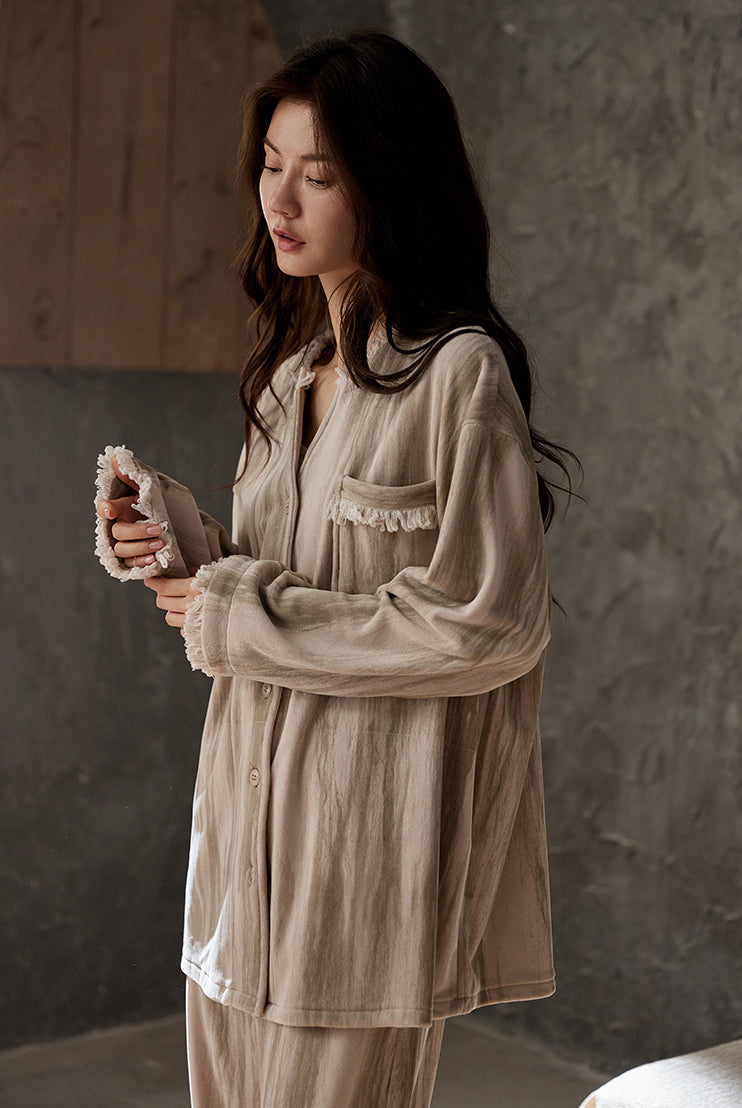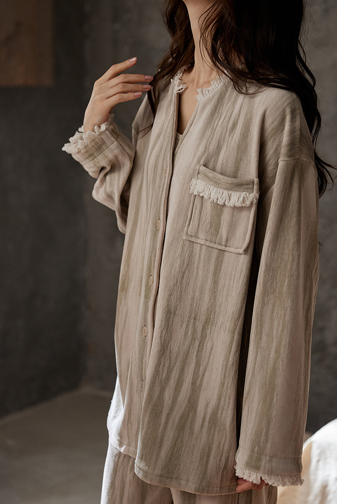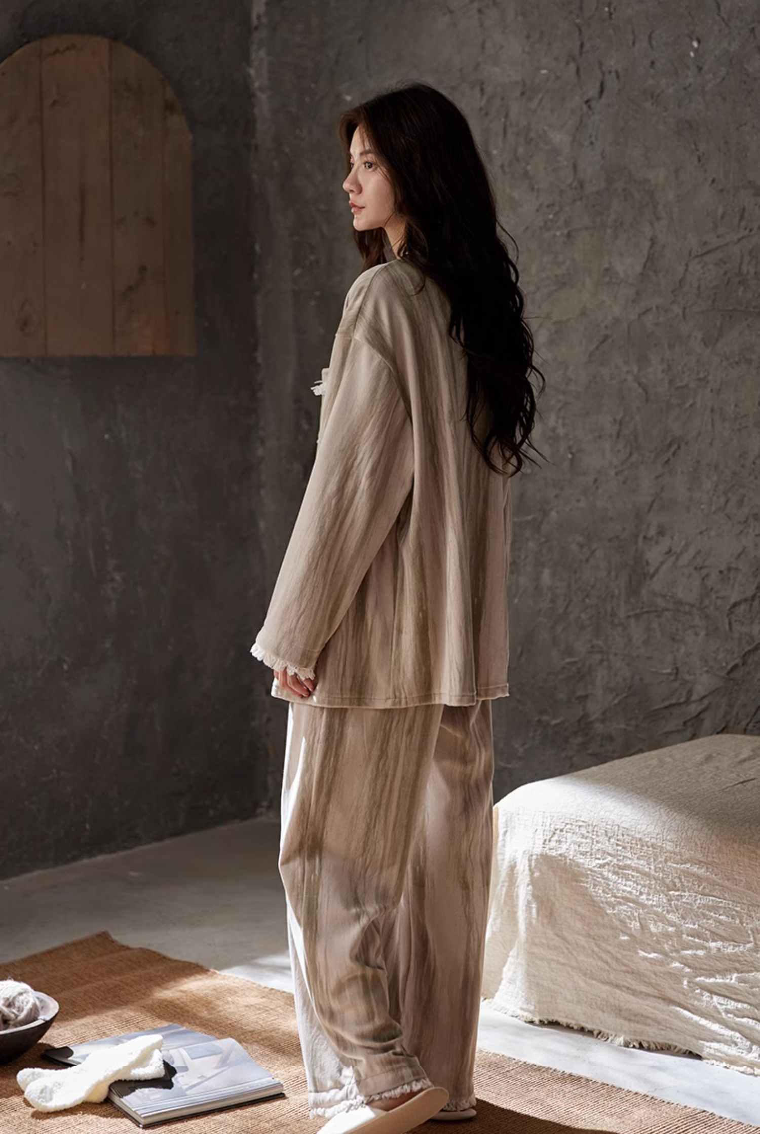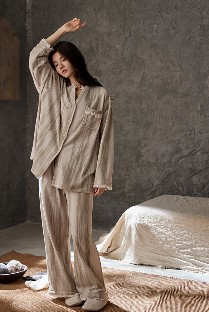 【25秋冬新作】 しっとりとした季節に寄り添う、やさしい綿のぬくもり。 上品で落ち着いたパープルが、女性らしさを引き立てながら、リラックスタイムに華やぎを添えます。 軽やかで動きやすいデザインは、おうち時間をより自由で快適に。 季節の変わり目の身体をそっと守り、毎日のくつろぎをよりあたたかなひとときに変えてくれる一着です。 |