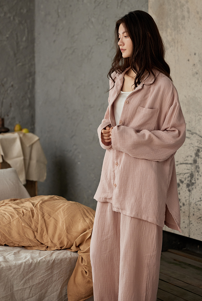 綿100% 【上品な パジャマレディース】女性彼女誕生 日 プレゼント二重ガーゼ 外出できる部屋着 通気性 モコモコ疲労回復 かわいい 優雅な紫 長袖 ルームウェア 【25秋冬新作】