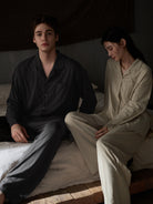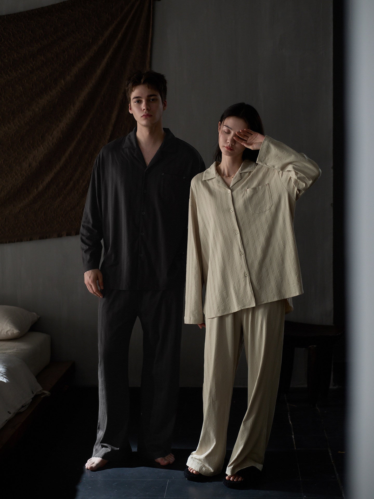 【リピーター続出】 やわらかく心地よい肌触りで、日常にちょっとした快適さをプラス。 ゆったりとしたリラックスシルエットで、動きを妨げず、男女問わず快適に着用可能。上下セットのデザインは、部屋でのリラックスタイムはもちろん、ちょっとした外出にも便利です。 落ち着いたカラーとシンプルなデザインが、秋の日常にやさしい安心感と安らぎをプラス。パートナーとお揃いで楽しむのにもぴったりの一着です。 |