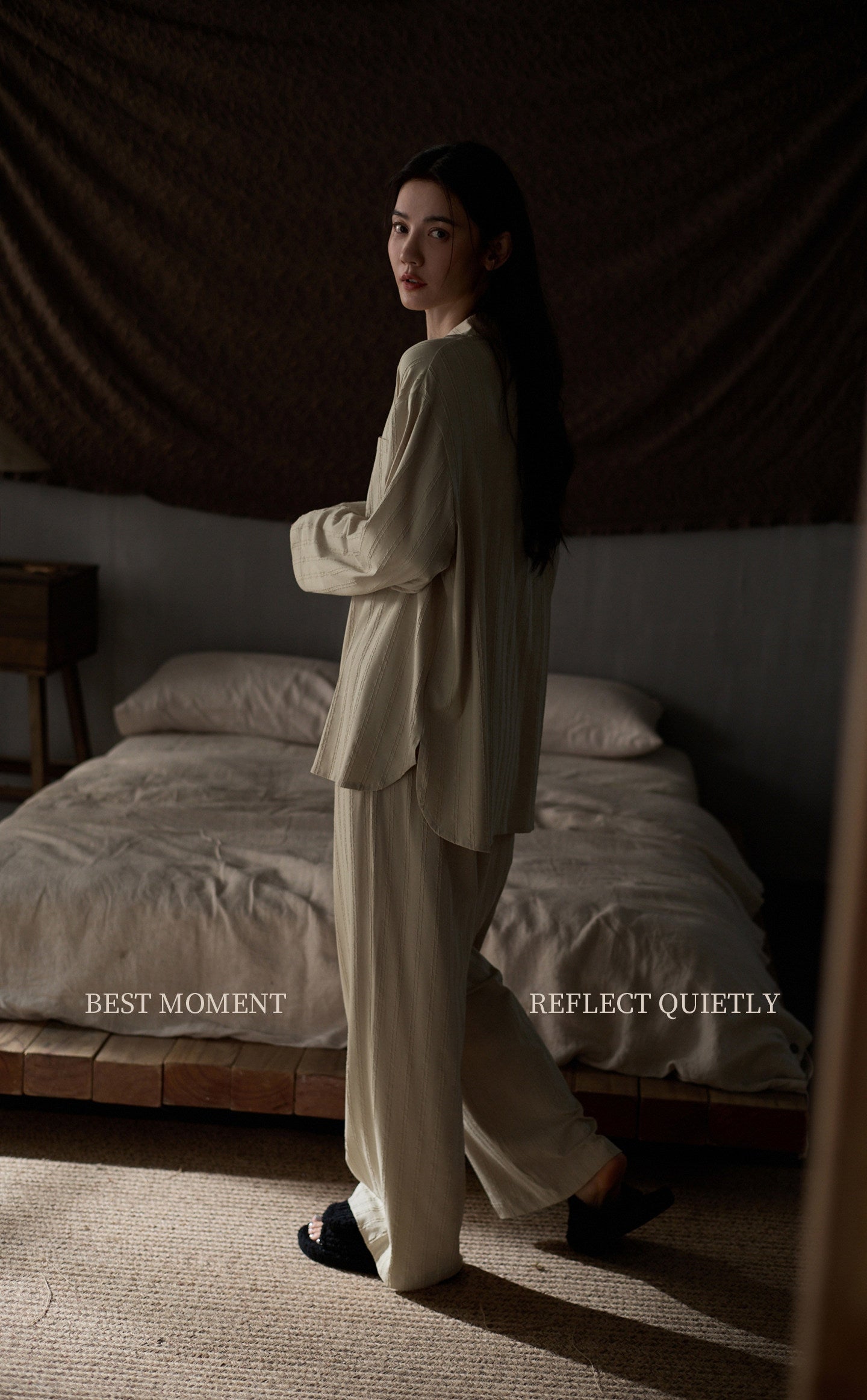 日常に寄り添いながらも、凛としたスタイルと心地よさを併せ持つホームウェアをお届けしています。
